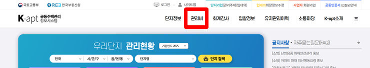 국토교통부에서 운영하는 공식 사이트로 전국 아파트 관리비 비교 가능