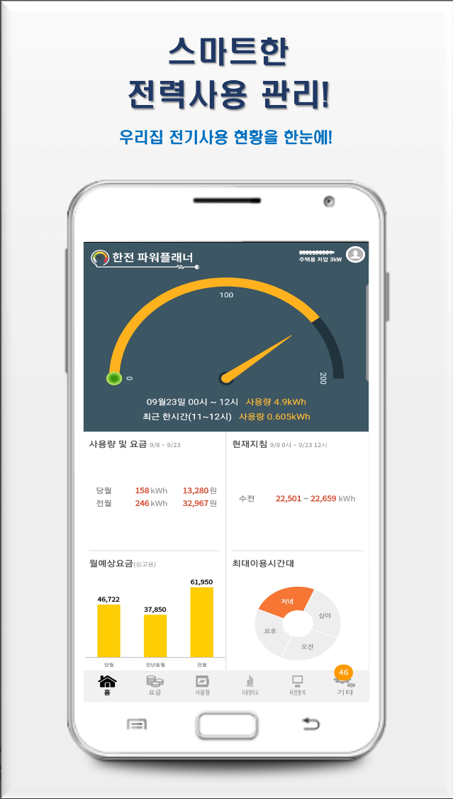 한전 파워플래너앱: 시간대별, 일별, 월별 전기 사용량과 요금을 실시간 조회 가능하므로 효율적인 전기를 관리할 수 있습니다