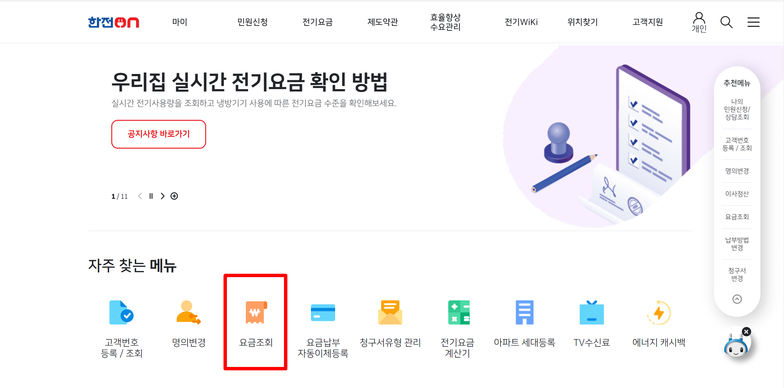 요금조회 클릭 > 고객번호 입력하시면 예상 금액 확인 하실 수 있습니다