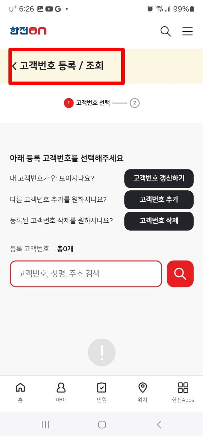 한전 홈페이지에서 고객번호 조회나 미등록 시 고객번호 추가로 등록하시고 확인 가능합니다.