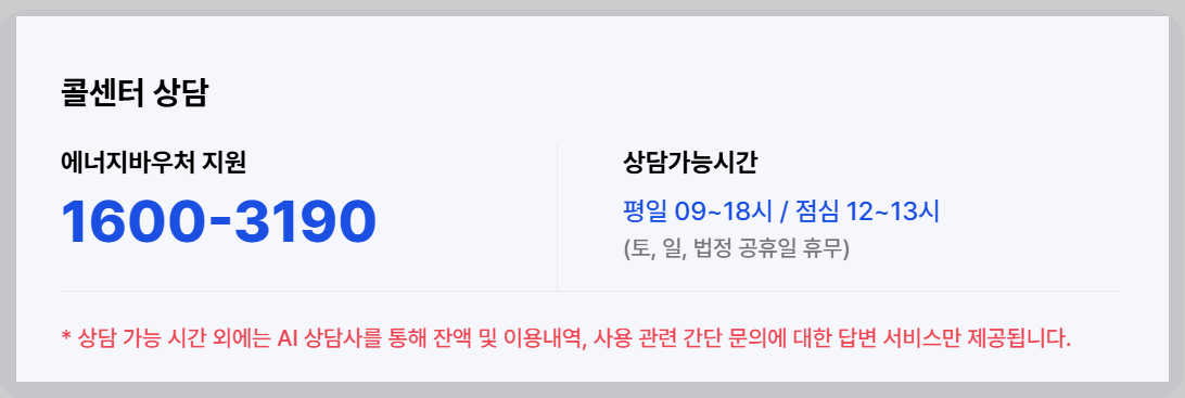 - 국민행복카드 사용 시: 카드 수령 후 에너지 구매 시 바로 사용 가능