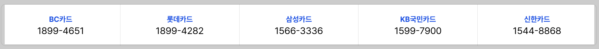 - 발급 카드사: BC, 삼성, 롯데, KB, 신한